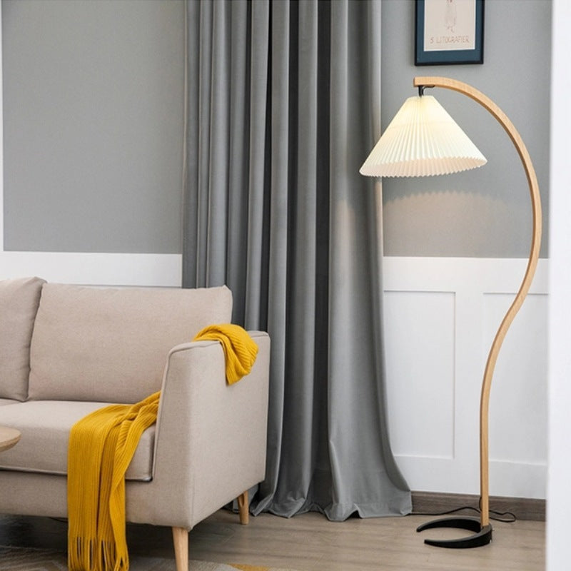 Pleated Solid Wood Floor Lamp