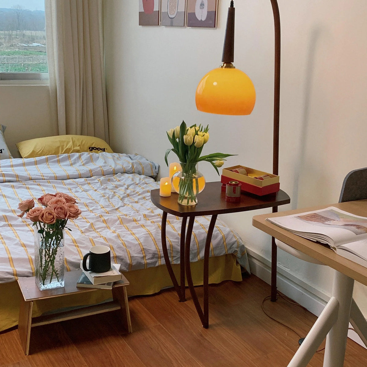 Wooden Table Floor Lamp